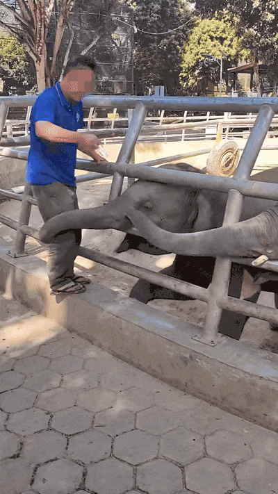 网友称,这两只挨打的小象,分别是刚满5岁的亚洲象“念念”和其近4岁的弟弟“乐宝”。视频拍摄于1月21日,当时这名员工当着众多游客的面,用铁锁多次猛砸两只小象的头部,令人心疼又气愤。