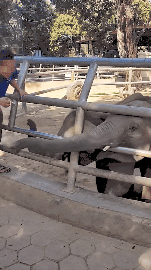 “我刚从那里回来,管理员虐待小象的现象很严重。一次是小象因为没吃到食物用力嘶吼,被管理员两只手使劲掐了鼻头。另一次把装胡萝卜的纸盒子也抢走吃了,管理员看到了一把掐在了小象的脸上,小象明显很疼……”一名网友称。